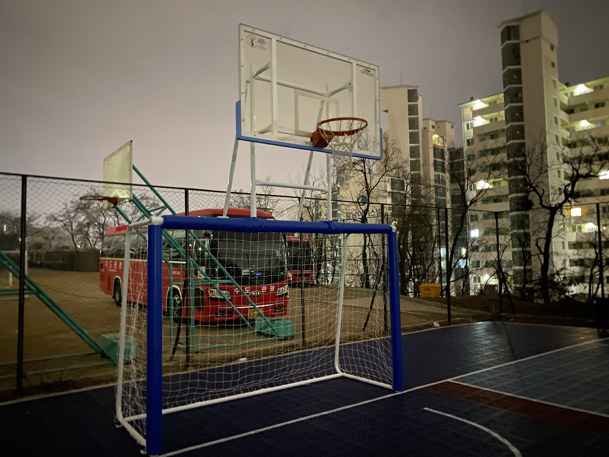 큰 공원이 없다보니 주민들 사는 거주지 안의 놀이터 골대 정도인데, 아무래도 공 튀기는 소리 때문에 9시 이후에는 사용을 못 한다.