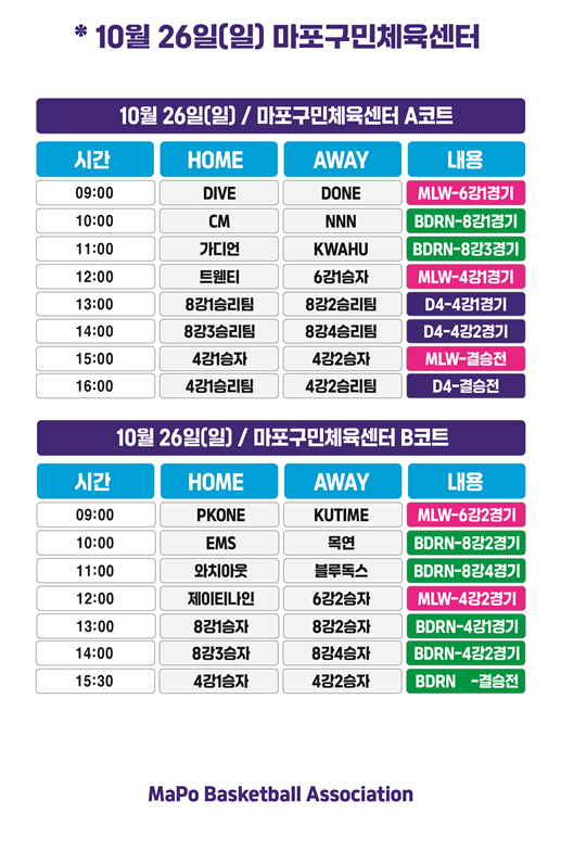 10월 26일에 2025 여성 비선출 마포리그 농구대회에 다녀왔다. 9시 경기여서 진짜 아침 일찍부터 부랴부랴 준비해서 갔다.. 사실 전 날 잠도 제대로 못잤다.. 왜 이렇게 매번 대회 전 날에는 잠을 제대로 못 잘까 ㅋㅋㅋ 여튼 그래서 오랜만에 망원 농구장 방문 ㅎㅎ 마포구민체육센터 바로 앞에는 골대 6개짜리 농구코트가 있다. 하지만 한 번도 실내 체육관에서는 해본 적이 없었는데, 이번 대회 때문에 처음으로 안에 들어가봤다.