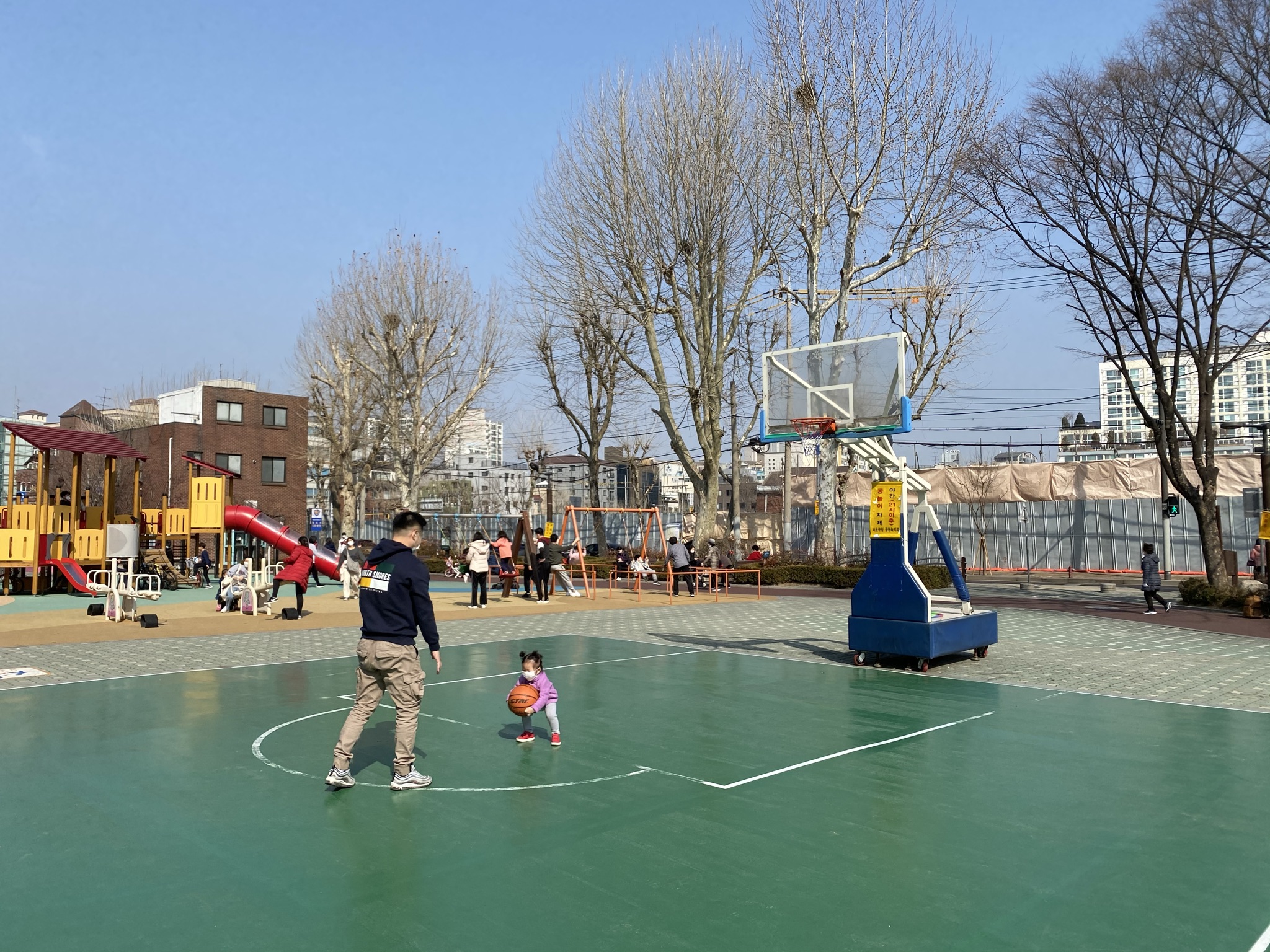코로나 때문에 막힌 곳이 많다보니, 이렇게 작은 농구장인데도 사람들이 꽤 많다.