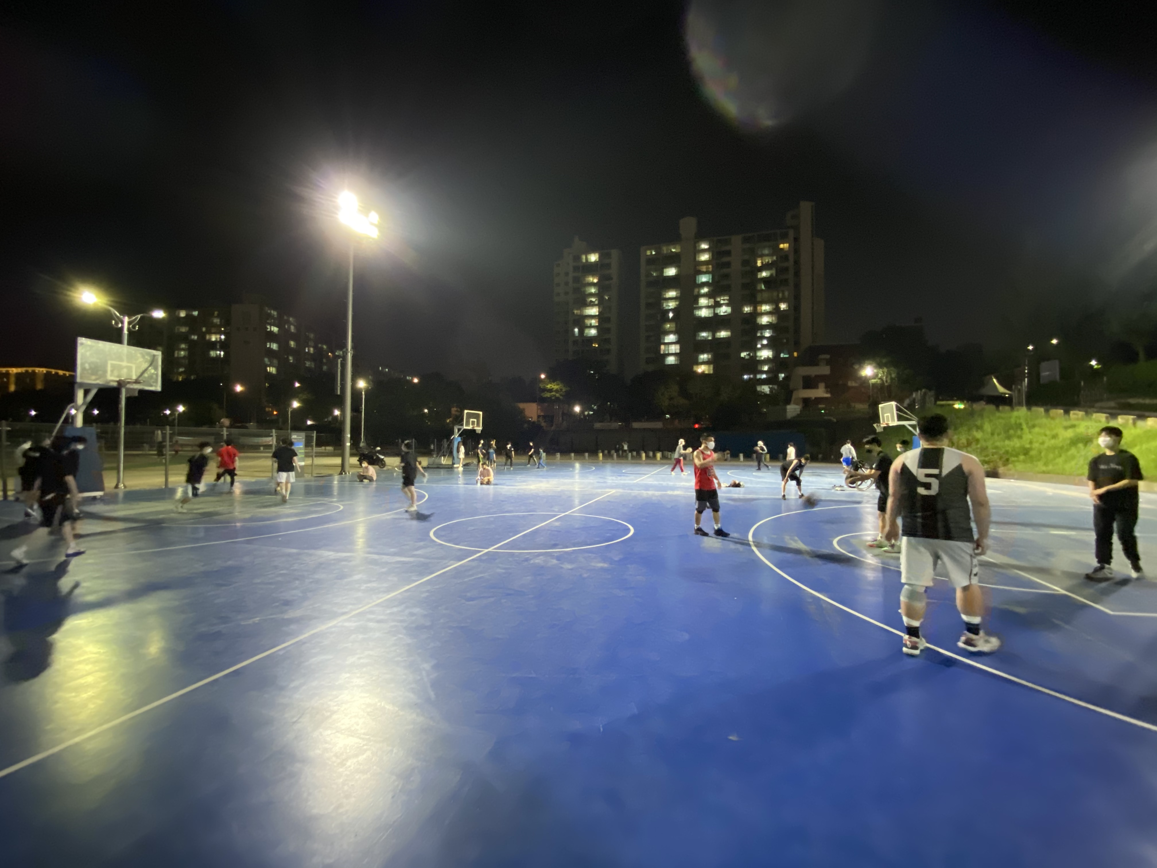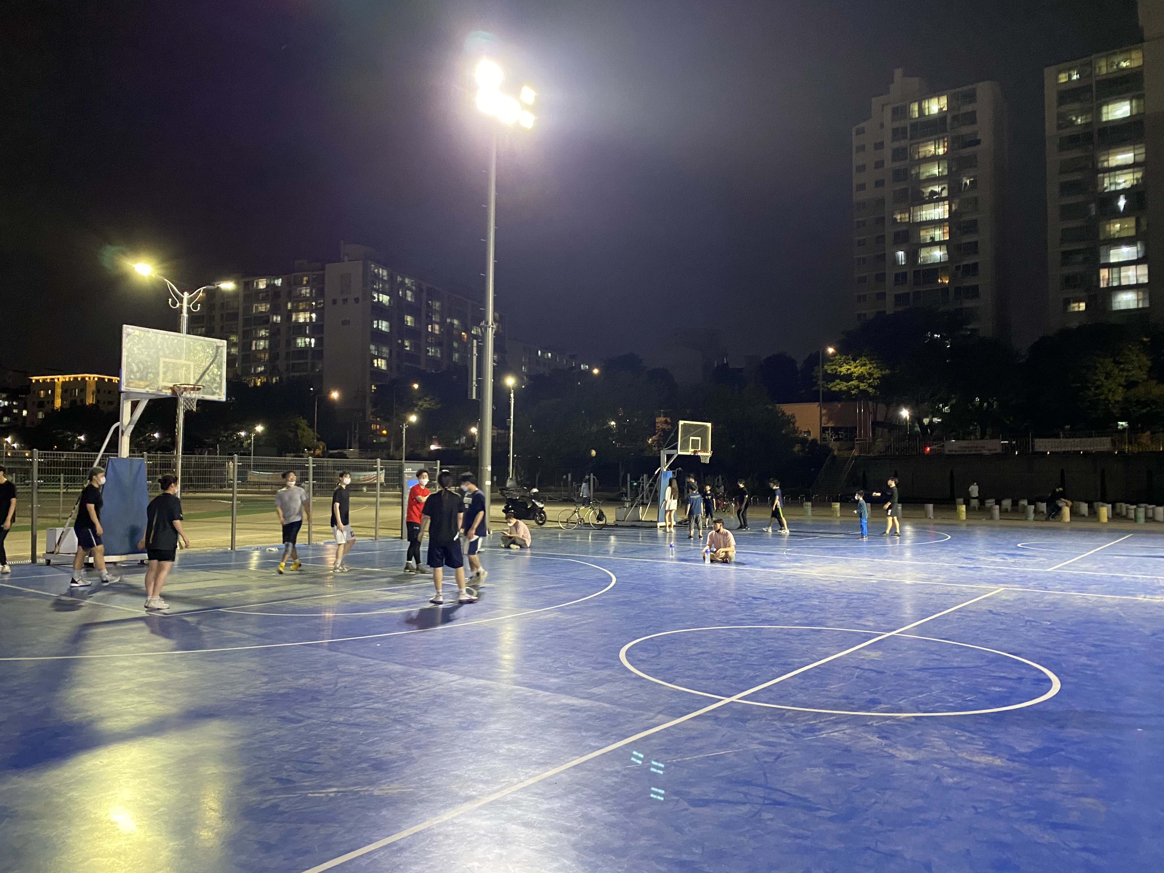 일단 라이트는 밤 10시 8분 정도까지 켜준다. 주말에 가면 진짜 오후부터 사람 엄청 많은데, 그 사람들이 라이트 꺼지기 직전까지도 농구를 하고 있다.