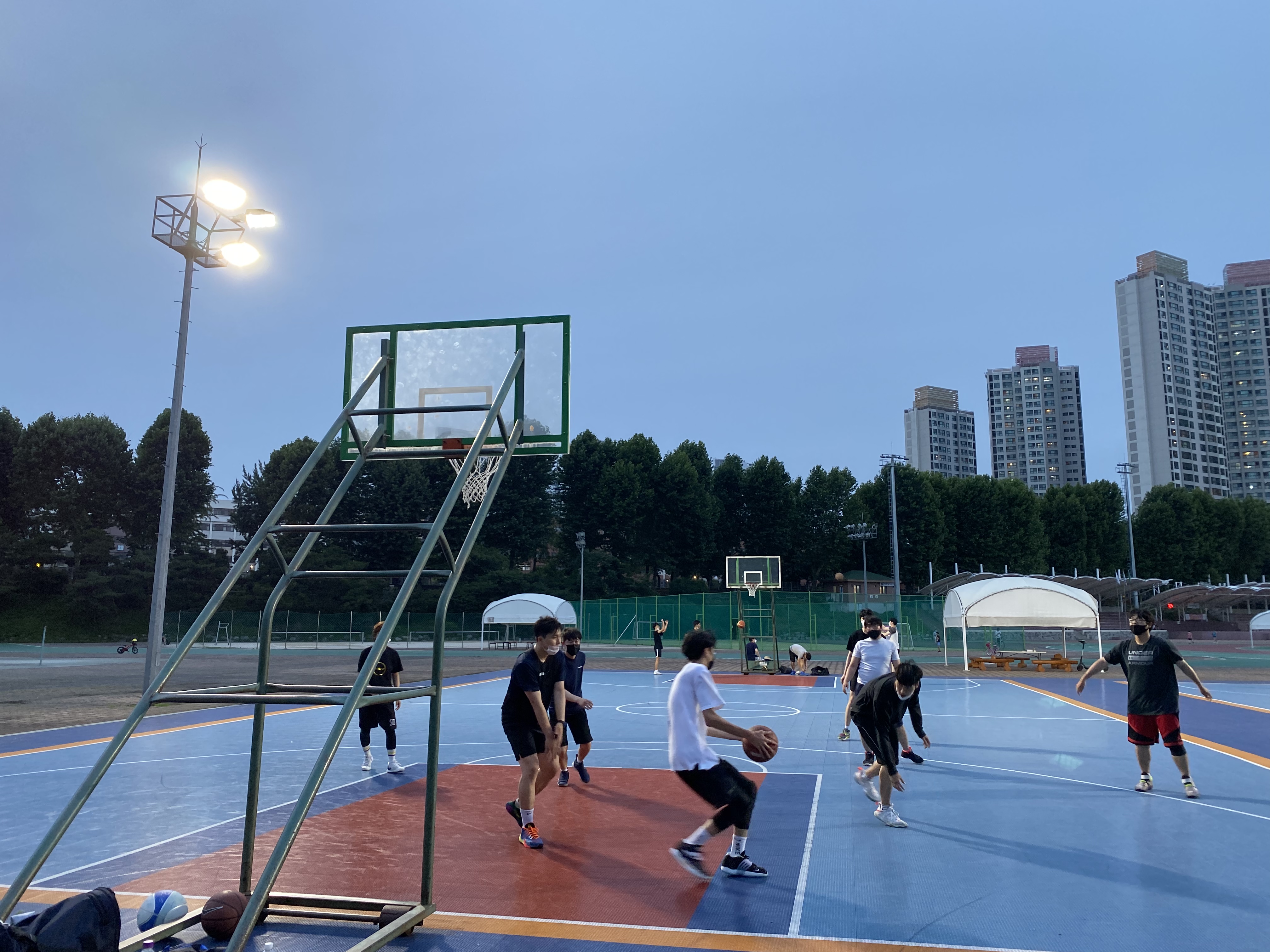 나는 이수, 사당 이 근처에 거주하는데 근처에 농구하러 다닐 곳이 없다. 학교 운동장 외에는 딱히 농구를 자유롭게 연습할 수 있는 큰 공원이 없다. 코로나로 닫혔던 반포종합운동장의 재개방은 나에게 큰 의미가 있다. 집에서 걸어서 30-40분이면 갈 수 있고, 골대가 8개나 있어서 주말이 아니면 연습할 자리가 있다. 나는 게임보다도 연습을 해야 하는 사람인데 맨날 자리가 없어서 주구장창 밀어내기만 해야 한다는 사실이 항상 슬펐다. 그런데 마침내! 드디어! 반포종합운동장이 열렸다! 열린 건 지난 주 금요일이었나, 나는 바로 그 주 주말인 토요일에 방문했다.