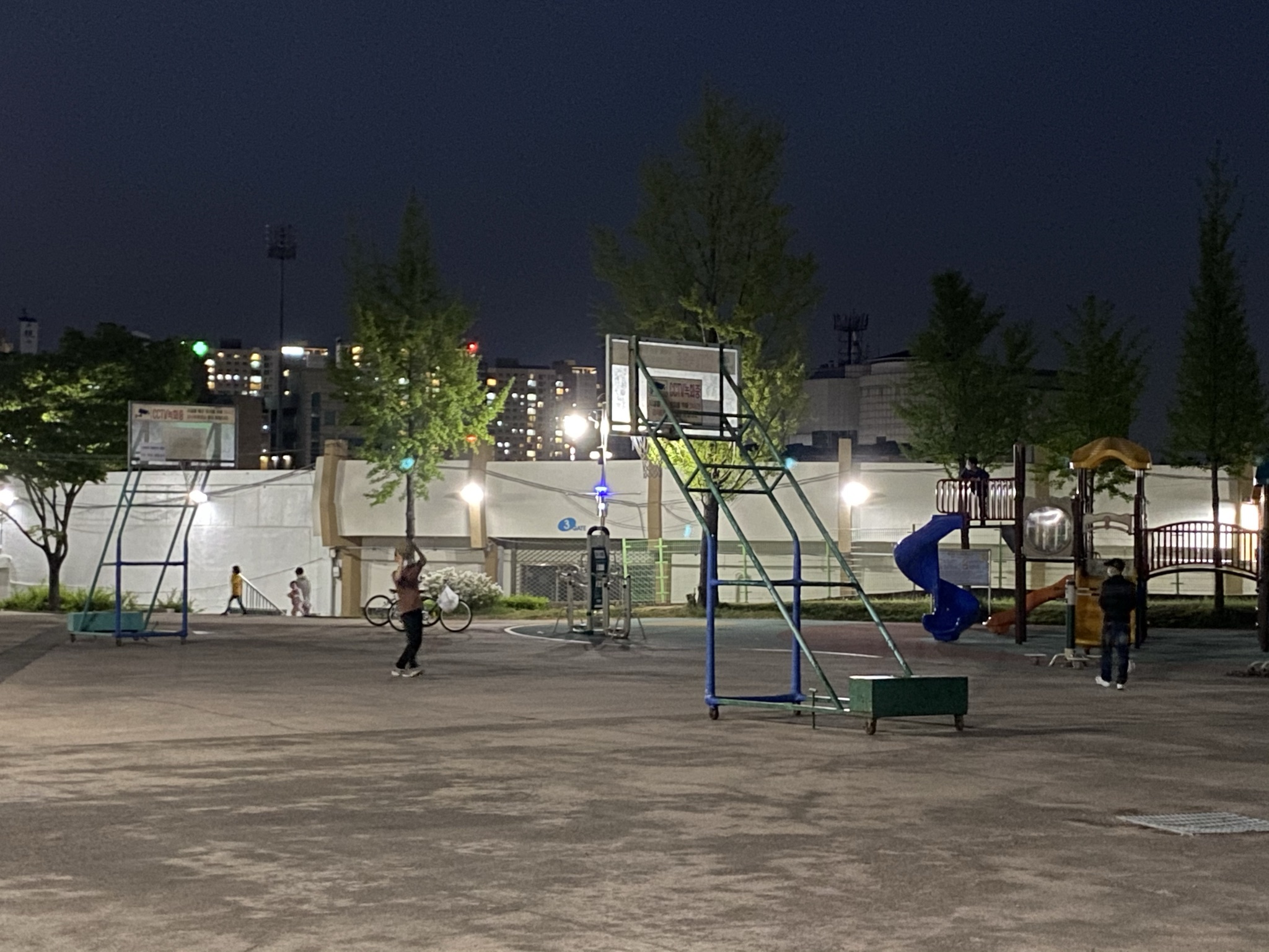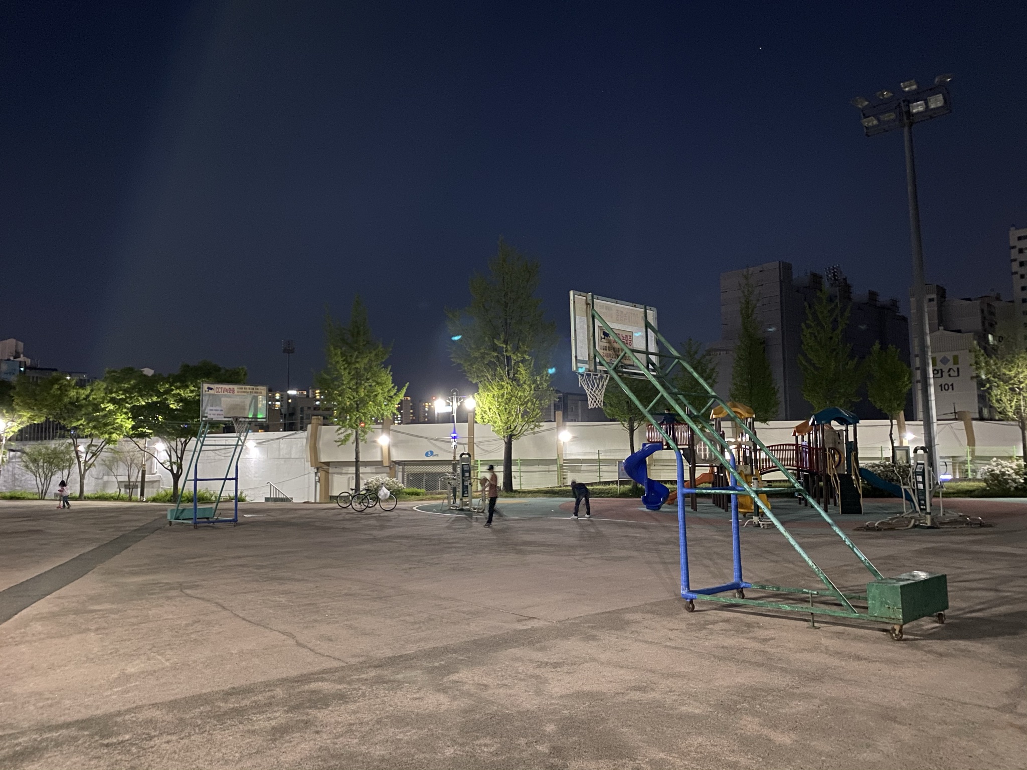 그리고 우레탄코트에서 공중화장실쪽으로 가다보면 아스팔트 바닥에 그냥 너저분하게 놓인 골대도 2개 있다. 여기는 진짜 말 그대로 딱 연습하기 좋은 곳이다. 연습하시는 분이 한 분 계셨다. 화장실이 가까워서 진짜 시합하기에 꽤 괜찮은 야외코트인 거 같은데 코로나인 점이 아쉽다.