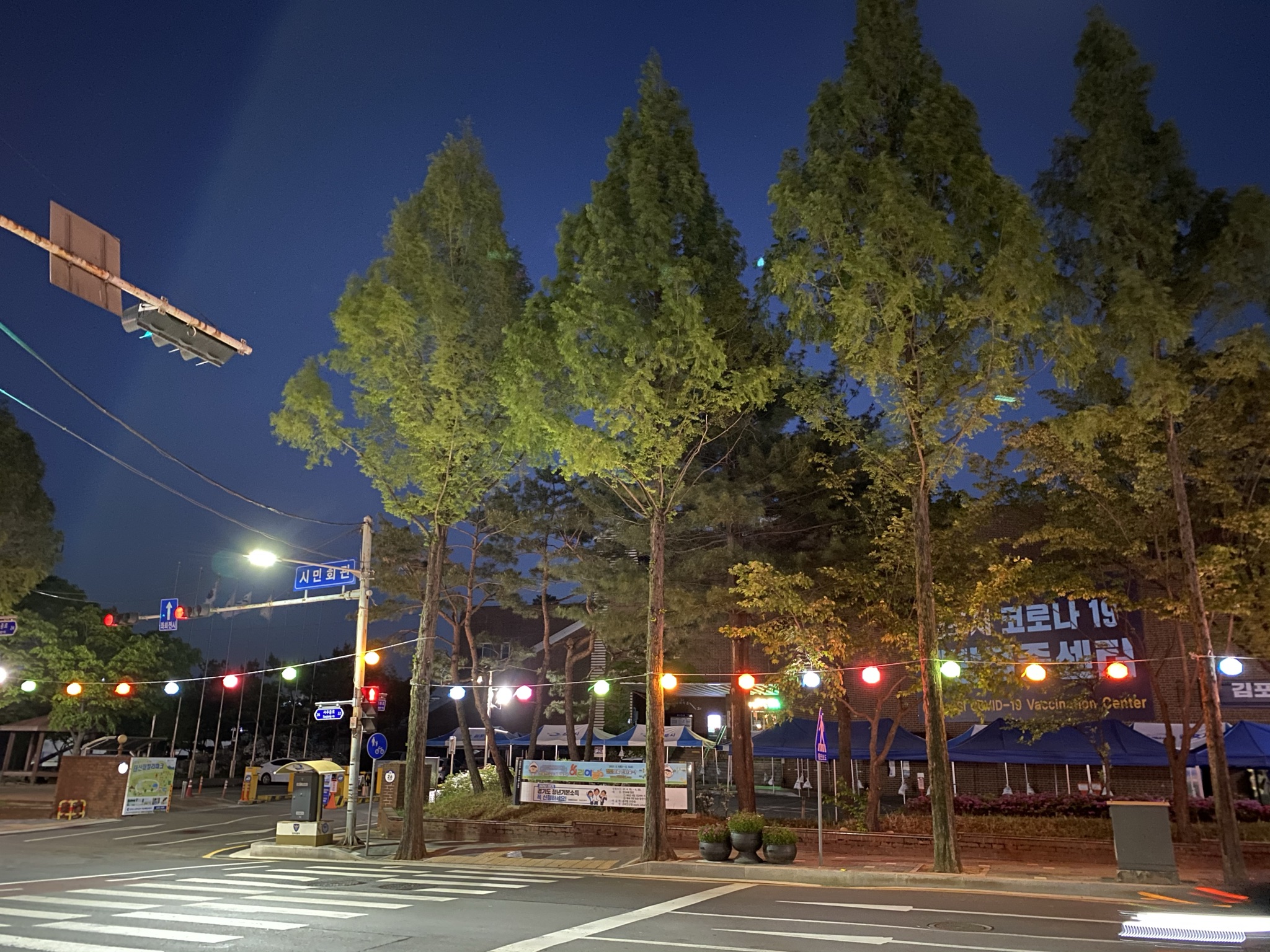 코로나 상황인 현재 실내체육관은 백신접종을 위해 쓰이는 것 같다. 들어가보진 않았지만 크게 현수막이 붙어 있다. 사진 속 보이는 횡단보도를 지나서, 건물 오른쪽 뒷편으로 가면 우레탄 바닥의 풀코트 농구장이 하나 나온다.