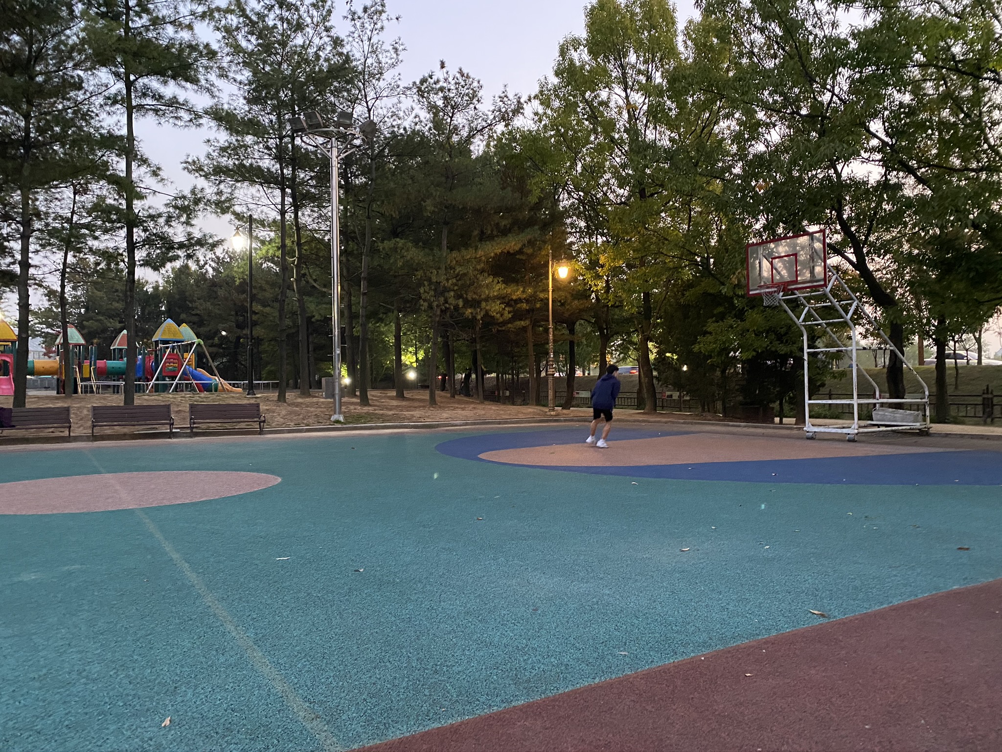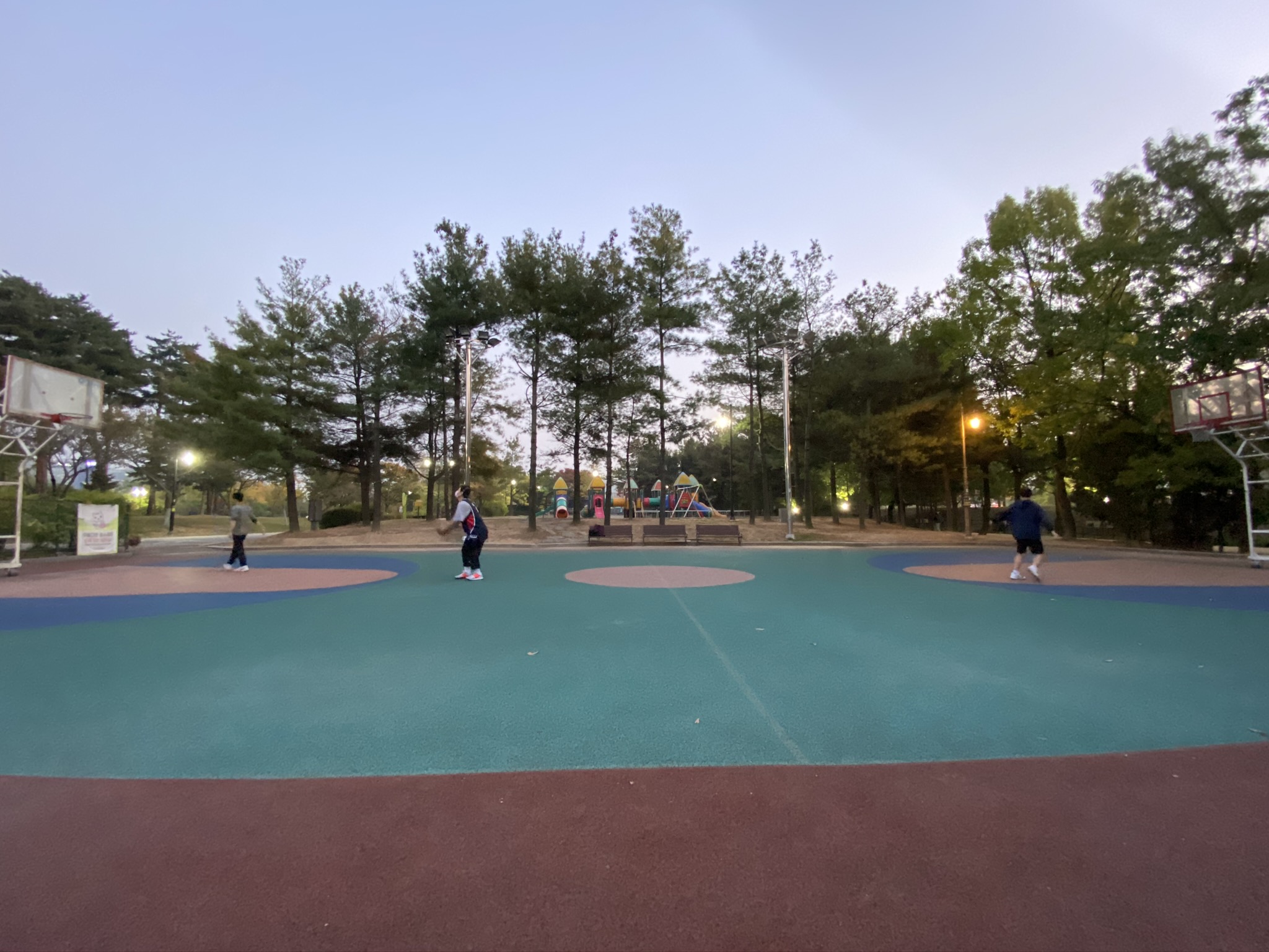 그래도 뭔가 주변이 숲이고 앞에는 놀이터도 있어서 아빠들이 아이와 와서 놀다가 농구 한 판하고 가기 좋아보인다.