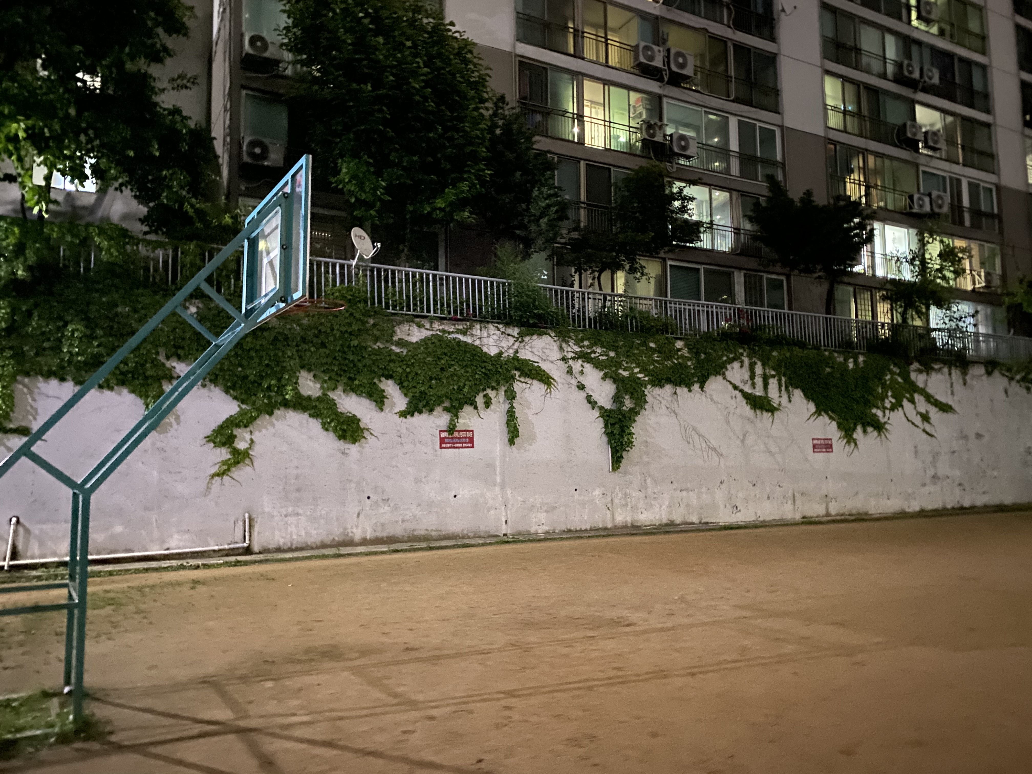 그리고 ㅋㅋㅋㅋ 진짜 아래의 사진에서 보면 알겠지만 진짜 후진 농구코트다. 농구코트라기도 그렇고 그냥 진짜 말 그대로 농구골대? 농구...연습장? 아니 연습이라는 단어도 과한데, 뭐 좋은 표현 없나. 그래도 집 근처에 농구골대가 있는 게 어디냐만은.