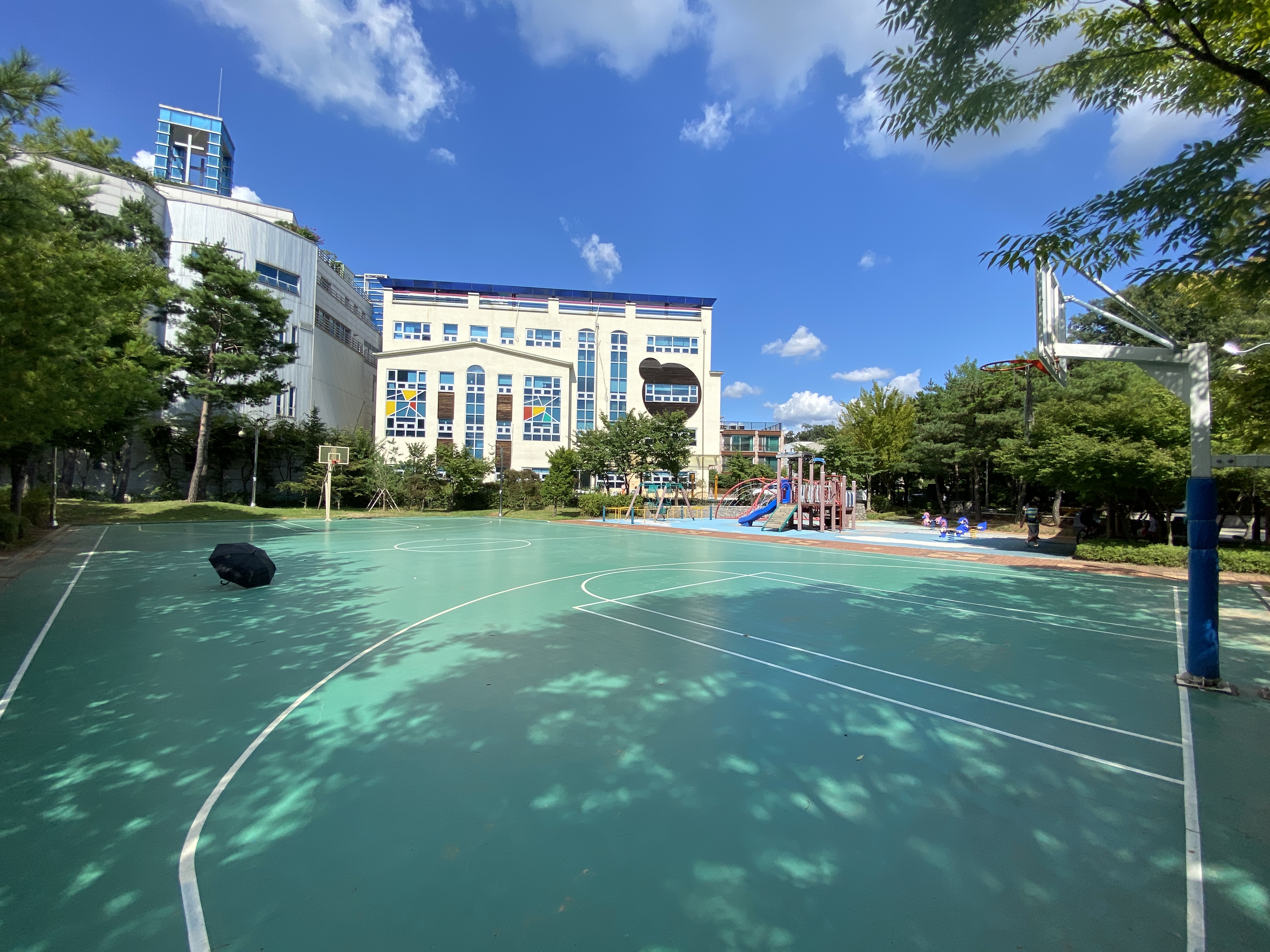 하도 더운 날씨였어서 (8월에 갔는데 이제야 포스팅) 우산을 들고 돌아다녔더니 농구장 한 가운데에 우산 덩그러니...ㅎㅎ